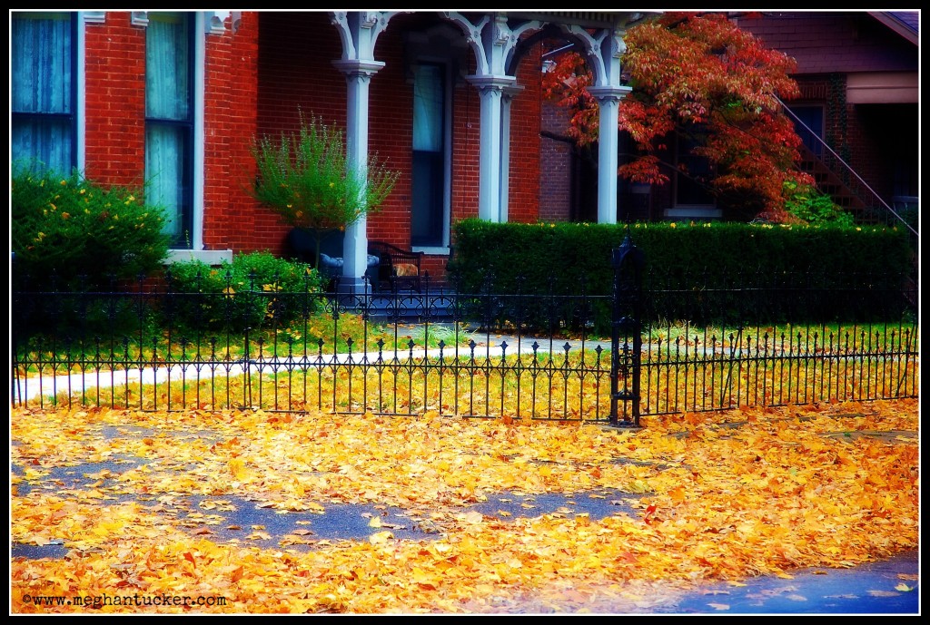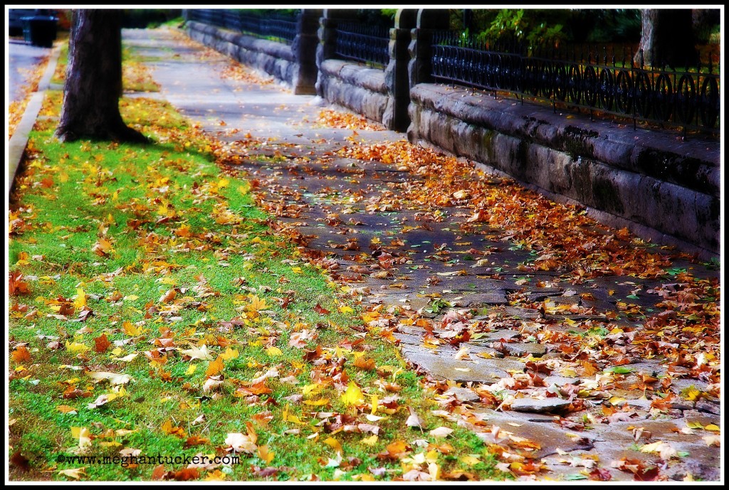 Orange leaves that cover the sidewalk on a historic part of town definitely makes it feel like fall is here.