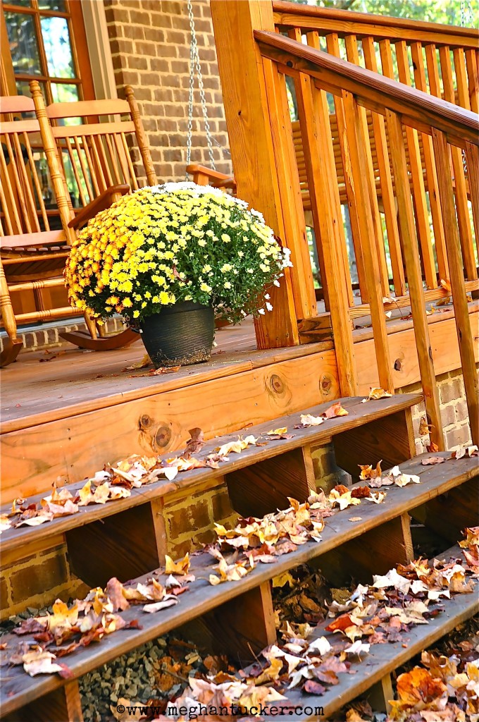 It’s here! Fall is starting to arrive and the cooler temps are here. We have sweatshirts on, and we’re watching the fall colors change right outside our front porch. Yes, we live in the middle of 15 acres of woods and this season is my favorite to watch from our porch.