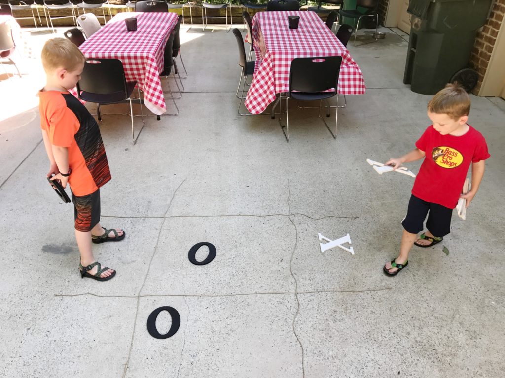 - Using one color for the O’s and another color for the X’s, paint away!
