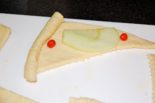 1. Unroll crescent rolls and separate into eight triangles.